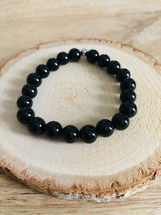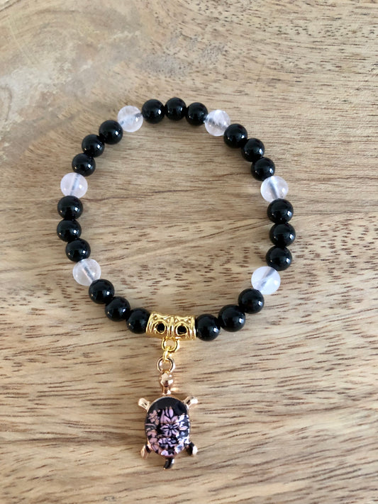 Bracelet Force & Douceur en Onyx & Quartz Rose