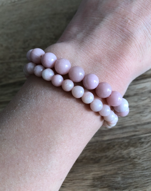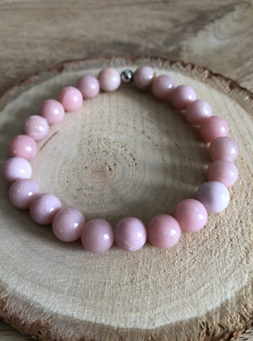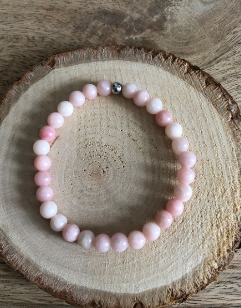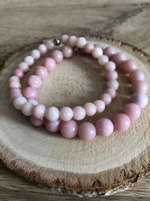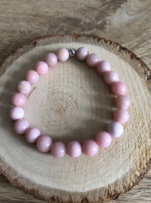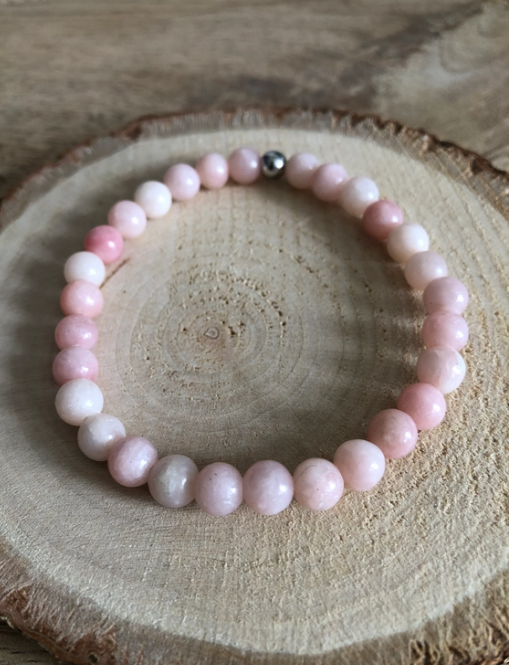 Bracelet en perles rondes, naturelles et authentiques d'Opale Rose.