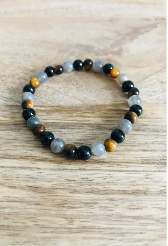 - Matière : Pierres naturelles (Labradorite, Oeil de Tigre & Tourmaline Noire)