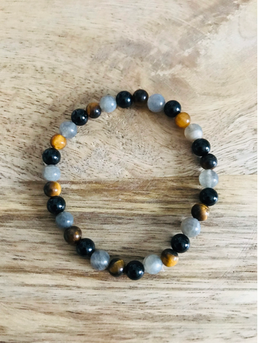 Bracelet Protection & Absorption en Labradorite, Oeil de Tigre & Tourmaline Noire