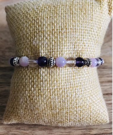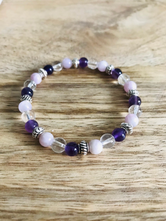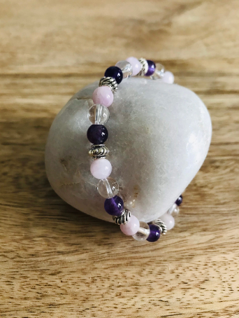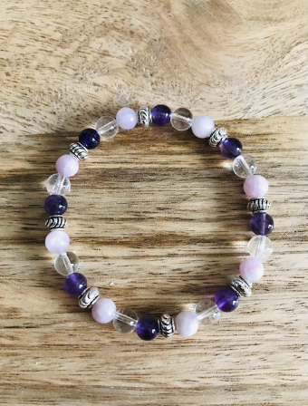 Bracelet Rassurant en Améthyste, Kunzite et Cristal de Roche