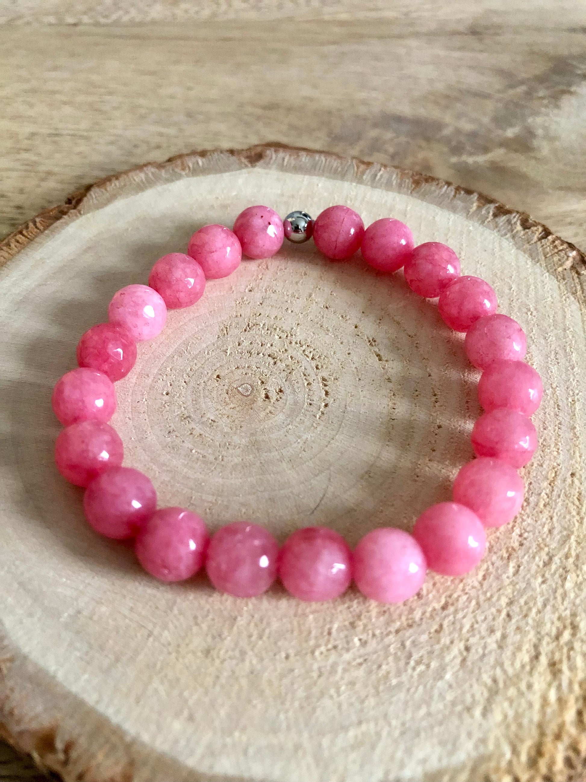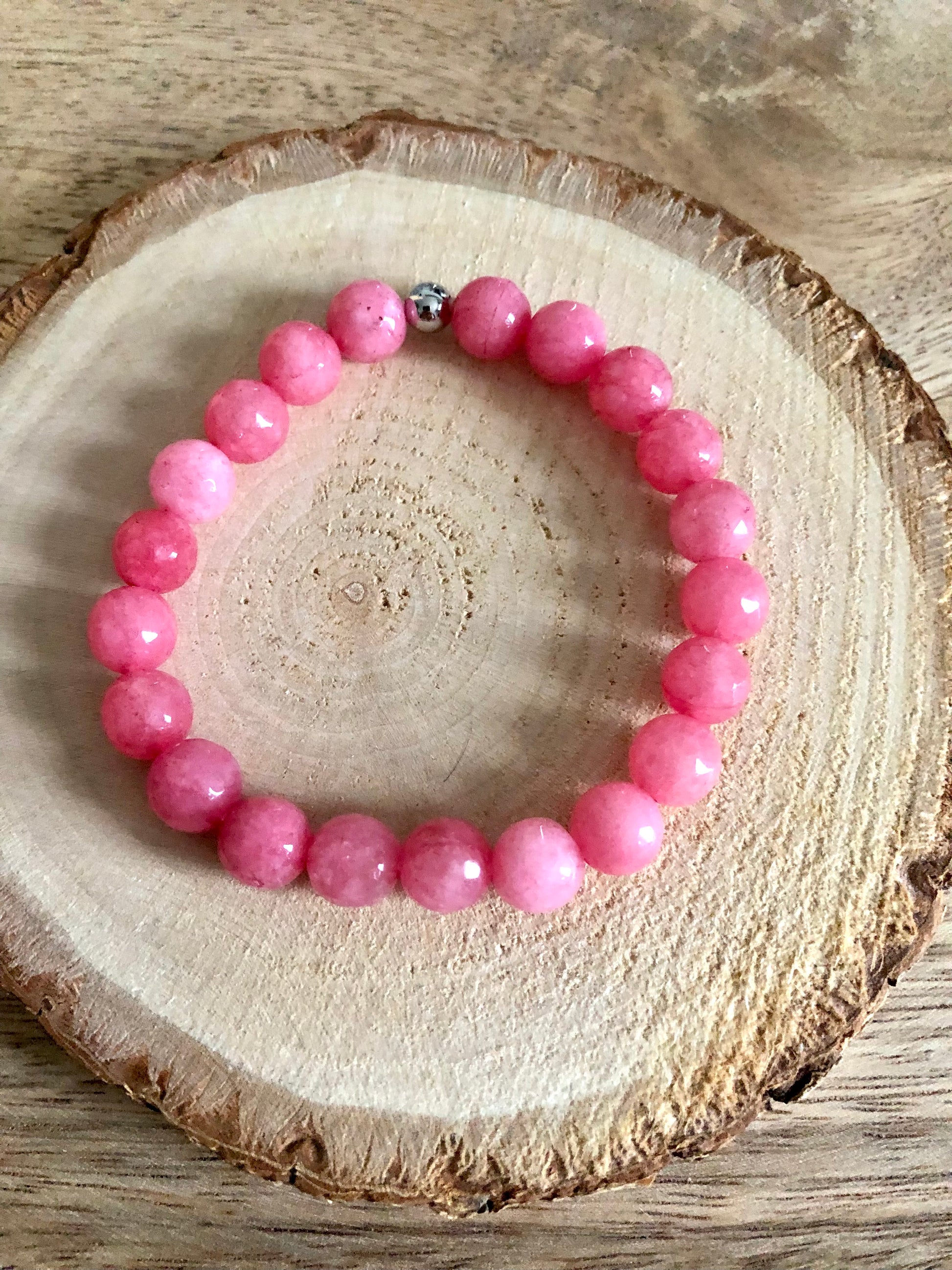 - Matière : Pierres naturelles (Jade Rose)